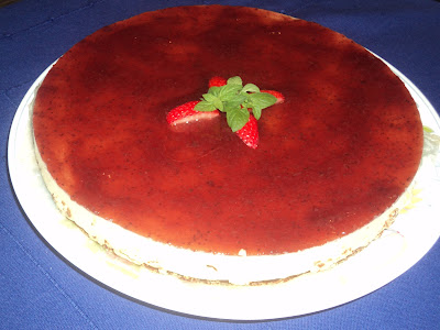 Antes de servir, espalhe em cima a compota de morango (pode usar outra a gosto).